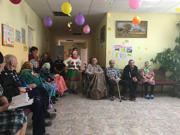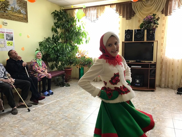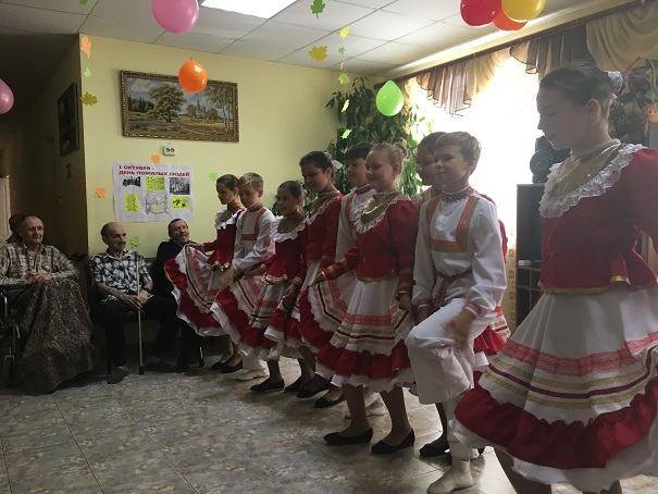 01.10.2018 1 октября- международный День пожилых людей. В этот день молодое поколение старается как можно больше внимания уделить старшему поколению: родителям, дедушкам, бабушкам и просто живущим рядом пожилым людям, отдать им дань добра и уважения, сказать теплые слова, согреть их души и просто порадовать их своим творчеством. В наше социально-реабилитационное отделение в этот праздничный день и накануне праздника, приезжают очень много художественных коллективов, прямо создается очередь из желающих поздравить получателей социальных услуг нашего отделения. Это стало традицией, не забывает молодежь о пожилых людях и это замечательно, они очень любят и ждут гостей. В этом году накануне праздника 28.09.2018 года первыми приехали учащиеся Базковской школы, руководитель коллектива -Борисенко Татьяна Тимофеевна поздравила пожилых людей, сказала теплые слова о том, что их опыт и мудрость нужны и важны для молодого поколения и они стараются воспитывать так своих учеников, чтобы молодежь уважали людей старшего поколения. Ребята нарядные, приветливые, улыбающиеся сразу подняли настроение нашим подопечным . С удовольствием слушали бабушки и дедушки песни в исполнении братьев Стукаловых, песню о коне в исполнении Сметанниковой, а задорные казачьи, народные танцы , красивые костюмы , вообще, привели пожилых людей в восторг они ещё долго были под впечатлением . Отпускали гостей со словами благодарности и пожеланием приезжать ещё.